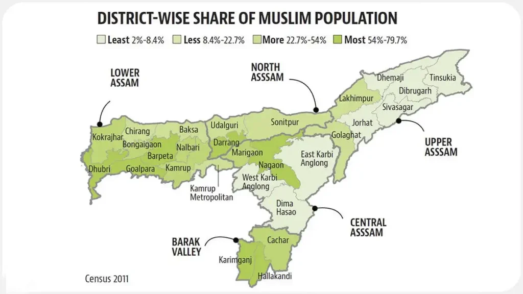 സംസ്ഥാനത്ത് ഒരു “ജനസംഖ്യാ അധിനിവേശം” (Demographic Invasion) നടക്കുന്നുണ്ടെന്നാണ് ഹിമന്തയുടെ പ്രധാന ആരോപണം. 1961 മുതൽ ഓരോ പതിറ്റാണ്ടിലും മുസ്ലീം ജനസംഖ്യയിൽ 4-5 ശതമാനം വർദ്ധനവ് രേഖപ്പെടുത്തുന്നുണ്ട്. 2021-ൽ 38 ശതമാനമായിരുന്ന മുസ്ലീം ജനസംഖ്യ, ഈ വളർച്ചാ നിരക്ക് തുടർന്നാൽ 2027-ഓടെ 40 ശതമാനത്തിൽ എത്തുമെന്നും കണക്കുകൾ ഉദ്ധരിച്ച് അദ്ദേഹം പറഞ്ഞു.