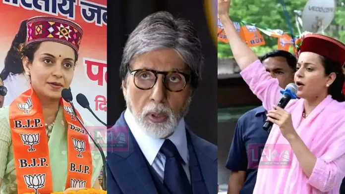 അടുത്തിടെ നടന്ന ഒരു പ്രചാരണ റാലിയിൽ, ഹിമാചൽ പ്രദേശിലെ മാണ്ഡി ലോക്സഭാ മണ്ഡലത്തിലെ ഭാരതീയ ജനതാ പാർട്ടിയുടെ (ബിജെപി) സ്ഥാനാർത്ഥിയായ കങ്കണ, അമിതാഭ് ബച്ചന് ലഭിക്കുന്നത് പോലെ സ്നേഹവും ബഹുമാനവും ലഭിക്കുന്ന ഒരേയൊരു സിനിമാ വ്യക്തിത്വം താനാണെന്ന് അവകാശപ്പെട്ടു. അമിതാഭ് ബച്ചന് ശേഷം ആർക്കെങ്കിലും ഇൻഡസ്ട്രിയിൽ ഇത്രയും സ്നേഹവും ബഹുമാനവും ലഭിക്കുന്നുണ്ടെങ്കിൽ അത് തനിക്കാണെന്നു ആത്മവിശ്വാസത്തോടെ പറയാൻ കഴിയും.താരം പറയുന്നു.