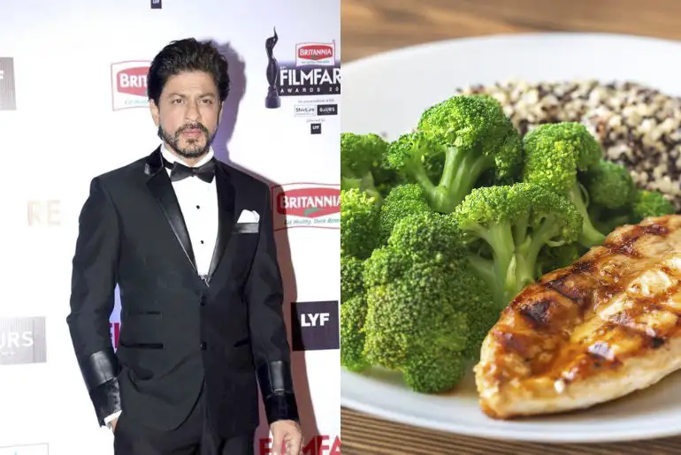 വർഷങ്ങൾക്ക് മുൻപ് ഒരു അഭിമുഖത്തിലാണ് ഷാരൂഖ് തന്റെ ഭക്ഷണരീതിയെക്കുറിച്ച് ആദ്യമായി വെളിപ്പെടുത്തിയത്. “എനിക്ക് സാധാരണ ഭക്ഷണം കഴിക്കാനാണ് ഇഷ്ടം. എണ്ണമയമുള്ളതും കൊഴുപ്പേറിയതുമായ ഭക്ഷണങ്ങളോട് പണ്ടേ താൽപര്യമില്ല. ഉച്ചഭക്ഷണവും അത്താഴവുമാണ് പ്രധാനം, അതിനിടയിൽ മറ്റ് സ്നാക്കുകളോ മറ്റോ കഴിക്കുന്ന ശീലവുമില്ല” – അദ്ദേഹം പറഞ്ഞു. അദ്ദേഹത്തിന്റെഭക്ഷണ മേശയിൽ സ്ഥിരമായി കാണുന്ന വിഭവങ്ങൾ ഇവയാണ്: മുളപ്പിച്ച പയർവർഗ്ഗങ്ങൾ, ഗ്രിൽഡ് ചിക്കൻ, ബ്രൊക്കോളി. കൂടെ ചിലപ്പോൾ അൽപം പരിപ്പ് കറിയും ഉണ്ടാകും.