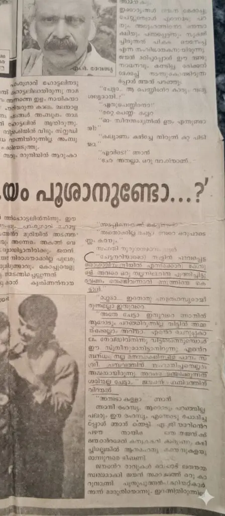 വർഷങ്ങൾക്ക് മുൻപ് സിനിമ മംഗളം എന്ന സിനിമ വാരികയിൽ പ്രശസ്ത മേക്ക് അപ് മാൻ ആയ എം.ഒ. ദേവസ്യ എഴുതിയ :തിക്കുറിശ്ശി മുതൽ ഷക്കീല വരെ എന്ന ലേഖനത്തിൽ “ഈയം പൂശാനുണ്ടോ…” എന്ന 51 ആം അധ്യായത്തിൽ അനശ്വര നടൻ ജയനെ കുറിച്ച് എഴുതിയ ചില കാര്യങ്ങൾ ആണ് ഇപ്പോൾ വൈറൽ ആകുന്നത്. ആ മാസികയുടെ ഒരു പഴയ പേജിന്റെ ചിത്രമാണ് ഇപ്പോൾ സാമൂഹിക മാധ്യമങ്ങളിലെ ചർച്ചാ വിഷയം.