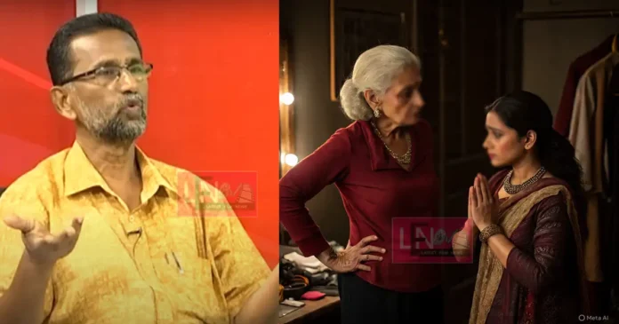 ഈ ‘അമ്മ നടിയെ കണ്ടാൽ നമ്മൾ എഴുന്നേറ്റ് നിന്ന് തൊഴും പക്ഷേ പല പ്രമുഖ നടൻന്മാരുടെയും പിമ്പ് ആണ് അവർ. നടന്മാർക്ക് വേണ്ടി ചില നടിമാരെ കരിയർ വാഗ്ദാനം ചെയ്ത് ചൂഷണം ചെയ്യുന്നതിനായി അവർ പ്രോത്സാഹിപ്പിക്കുമായിരുന്നു., തെലുങ്ക്, ഹിന്ദി സിനിമകളിലെ രേഖ, ശ്രീദേവി തുടങ്ങിയ നടിമാരെ ഉദാഹരണമായി ചൂണ്ടിക്കാട്ടി അവർ നടിമാരെ ഇതിനു താല്പര്യപ്പെടുത്തിയിരുന്നത് എന്ന് അദ്ദേഹം അപറയുന്നു. അവർ അടുത്തിടെ മരിച്ചു പോയി എന്നും അദ്ദേഹം പറയുന്നു. അത് പറയുമ്പോൾ ആ നടിയെ തനിക്കറിയാം എന്ന് അവതാരകനും പറയുന്നു.