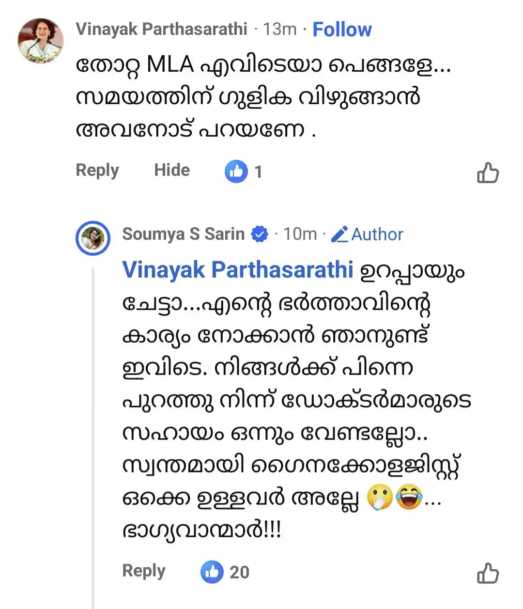 കോൺഗ്രസിന്റെ യുവ എംഎൽഎ രാഹുൽ മാങ്കൂട്ടത്തിലിനെതിരെ ഒന്നിലധികം ലൈംഗികാരോപണങ്ങൾ ഉയർന്നുവന്നതോടെയാണ് ഈ രാഷ്ട്രീയ വിവാദങ്ങളുടെ തുടക്കം. ഈ സാഹചര്യത്തിൽ രാഹുലിനെ നിശിതമായി വിമർശിച്ചുകൊണ്ട് സിപിഎം നേതാവും മുൻ നിയമസഭാ സ്ഥാനാർത്ഥിയുമായ ഡോ. പി. സരിൻ രംഗത്തെത്തി. ഇതിന് മറുപടിയെന്നോണം, “തോറ്റ എംഎൽഎ എവിടെപ്പോയി?” എന്ന തരത്തിൽ സോഷ്യൽ മീഡിയയിൽ ഉയർന്ന പരിഹാസങ്ങൾക്ക് ശക്തമായ ഭാഷയിൽ മറുപടി നൽകി സരിന്റെ ഭാര്യ ഡോ. സൗമ്യ സരിൻ ശ്രദ്ധ നേടി. “എന്റെ ഭർത്താവ് തോറ്റത് മാന്യമായാണ്, അദ്ദേഹത്തെ ഓർത്ത് എനിക്ക് ഒരിക്കലും തലകുനിക്കേണ്ടി വന്നിട്ടില്ല,” എന്നായിരുന്നു സൗമ്യയുടെ വാക്കുകളുടെ കാതൽ.