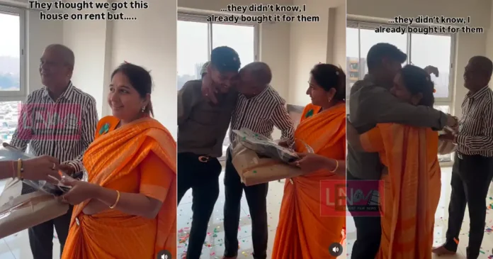 മകൻ പുതിയതായി വാടകയ്ക്ക് എടുത്ത വീട് കാണാനാണ് തങ്ങൾ വന്നതെന്നാണ് ആ മാതാപിതാക്കൾ കരുതിയിരുന്നത്. എന്നാൽ, ആ സന്ദർശനം അവരുടെ ജീവിതത്തിലെ ഏറ്റവും വലിയ സന്തോഷ നിമിഷമായി മാറുകയായിരുന്നു. വീടിന്റെ താക്കോൽ മാതാപിതാക്കളുടെ കൈകളിൽ വെച്ചുകൊണ്ട് ആശിഷ് പറഞ്ഞു: “ഇത് വാടകയ്ക്കല്ല, ഇത് ഇനി മുതൽ നിങ്ങളുടെ സ്വന്തം വീടാണ്”.